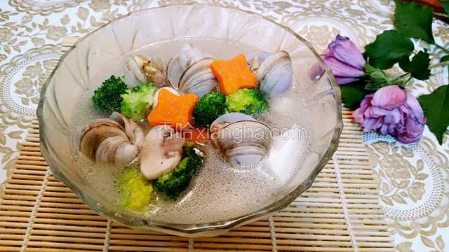 喜欢清汤的话就不要炒蘑菇和蛤蛎了,直接清汤煮开就可以了。