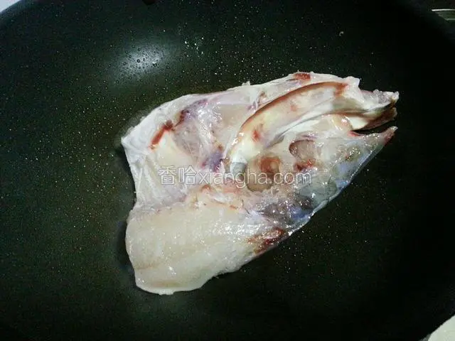 2.锅里放入少许油,鱼头的正面朝下煎一煎