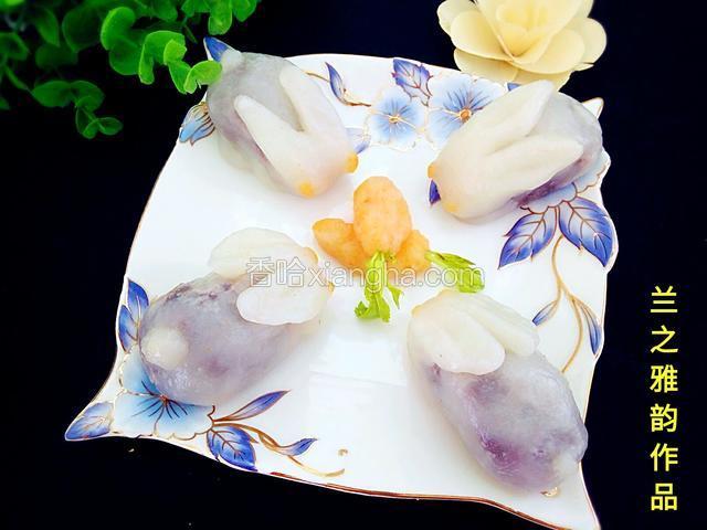 4.揪一点粉团和胡萝卜泥,做眼睛用
