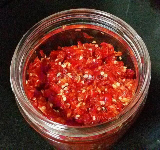 4.红线椒晾干去蒂切小段。