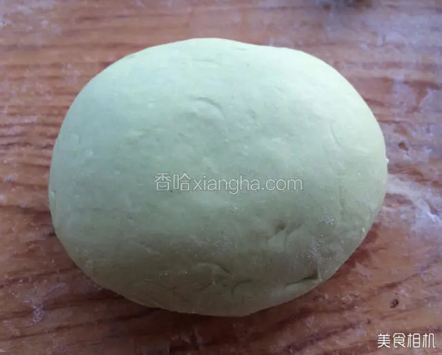 4.面粉放容器里用小白菜汁和面成絮状