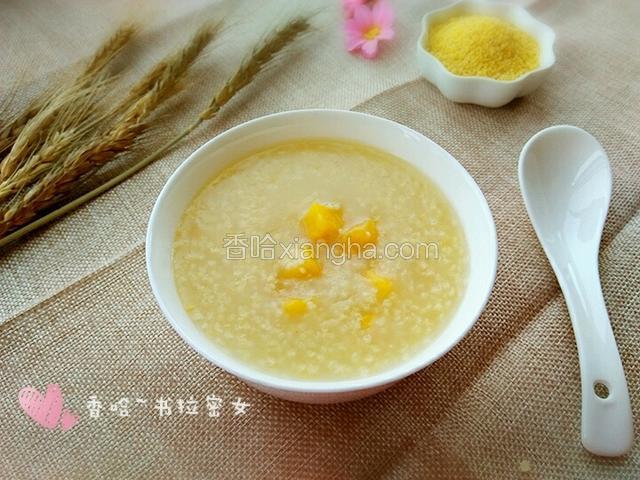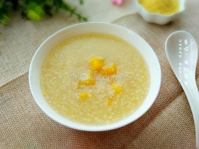 6.锅里煮粥的时候,会有一点沫沫浮在表面上,要用勺撇干净。