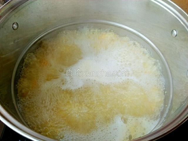 4.将步骤3倒入步骤2的锅里,炉灶开大火烧开。