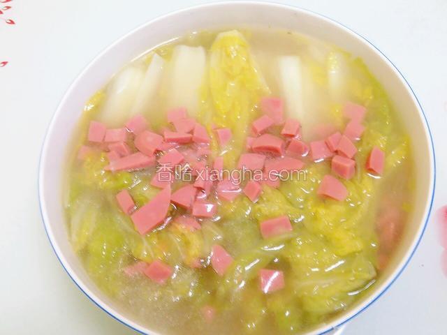 3.火腿肠切小丁,葱切段,姜切片,浓汤宝1盒