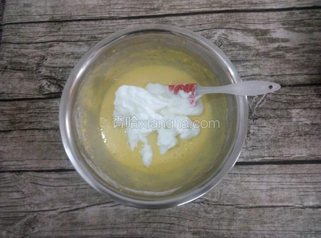 2.把蛋黄和蛋白分离装入无水无油的干净容器里,只需三个蛋白,分离出来的蛋黄加入全蛋容器里。
