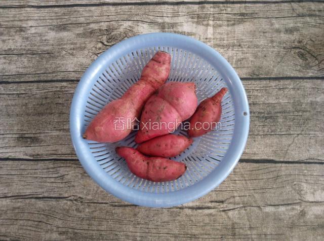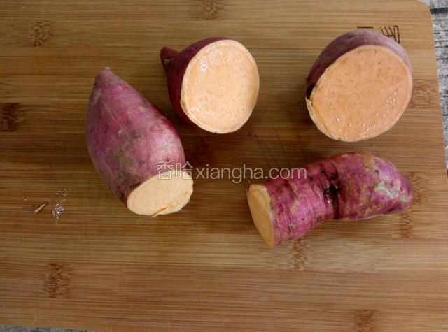 2.把地瓜处理一下,大一点的地瓜,切段,其目的是在烤制过程受热均匀,使其更快烤熟。