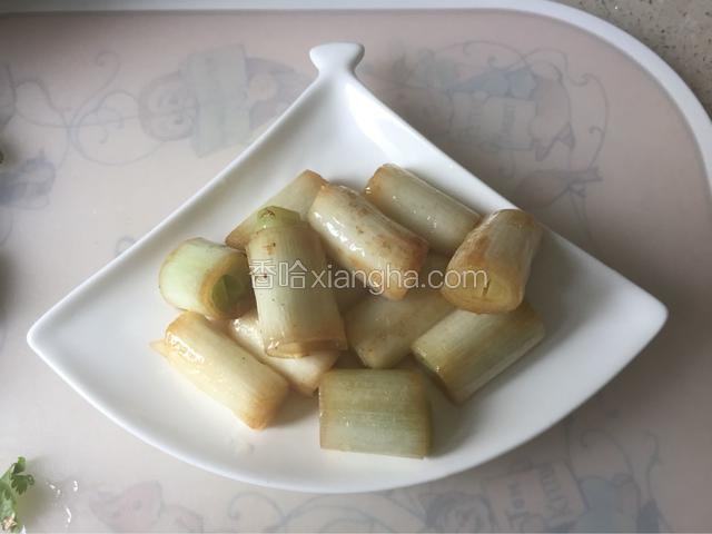 6.锅内油热放入大葱段、姜片、八角、香叶、草果、干辣椒爆香。