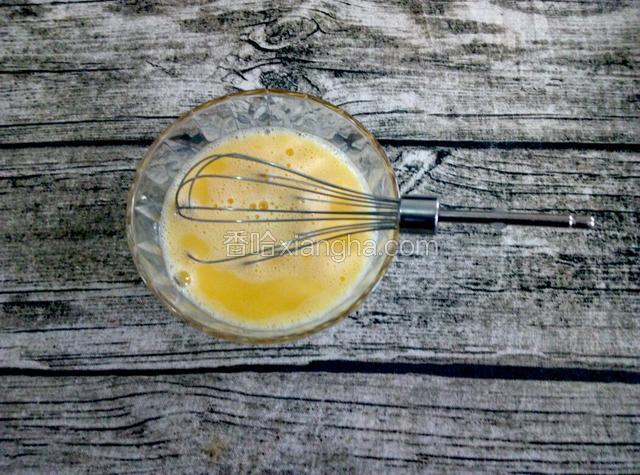 3.鸡蛋用手动打蛋器打散,待用。