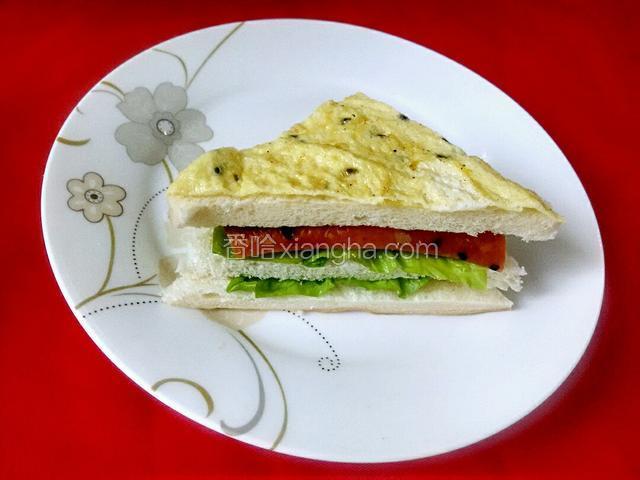 3.生菜洗净,火腿切条,一片吐司放一片生菜