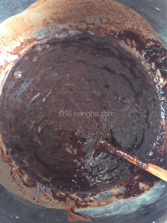3.趁热放入白砂糖和巧克力,搅拌使其融化。