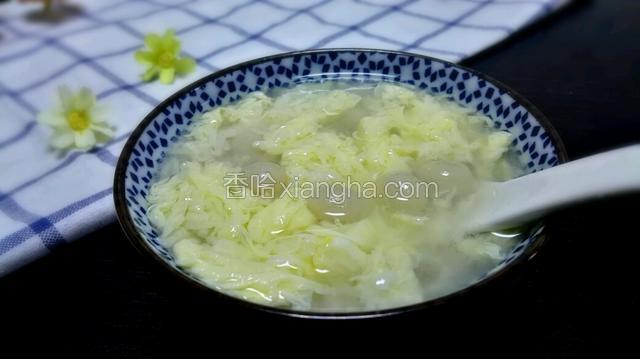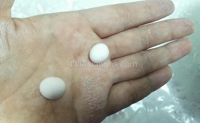 2.糯米粉里加入60℃左右的热水,用筷子搅拌成大颗粒状。