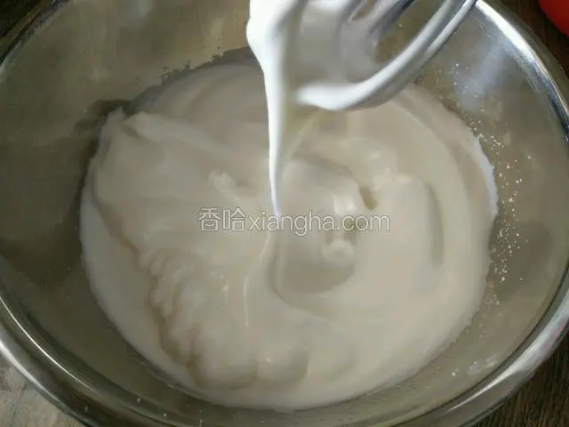 4.把提前过筛好的玉米淀粉和低筋面粉倒入,迅速搅拌均匀