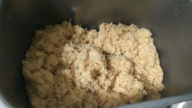 6.再把肉放在一个干净的塑料袋里,收口扎紧,用擀面杖慢慢擀开,让肉丝都擀开