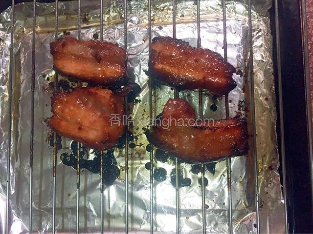 6.烤盘铺上锡纸,防油滴落容易清洗,放上烤网,取出腌好的肉,把肉放在烤网上