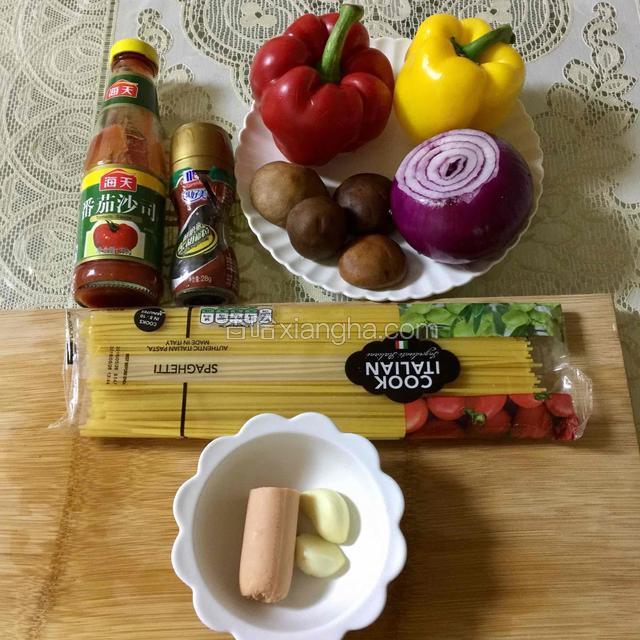 2.处理一下食材,把火腿和所有蔬菜切丝,大蒜切末。