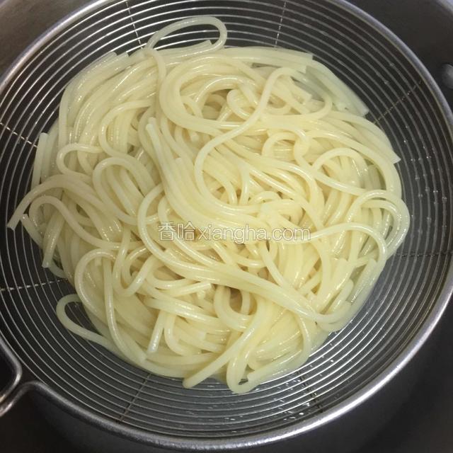 4.在煮意面的时候,用不粘锅把火腿煎成焦香状态备用。(嫌麻烦的话这步可以省略)