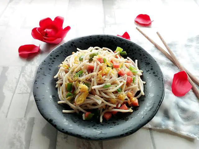6.最后加入蛋花,适量盐,鸡精,耗油,大火快速翻炒一会就可出锅。