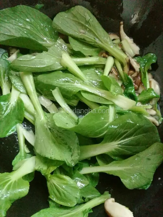 6.放入小白菜快速翻炒