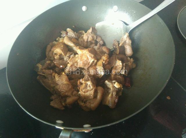 4.待羊肉煮开后倒入适量料酒,煮至羊肉变色。