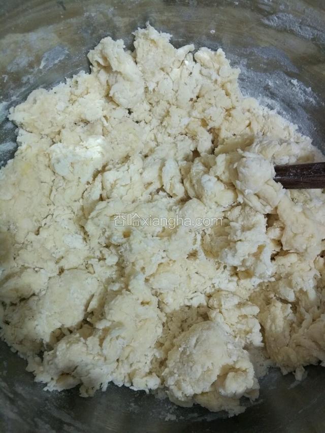 3.再把面粉移到面板上,揉搓面团,像洗衣服那样