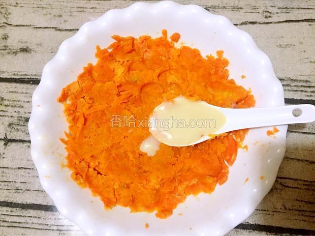 1.红薯洗净去皮切成薄片后盖上保鲜膜放入微波炉加热至熟,或者上锅蒸熟