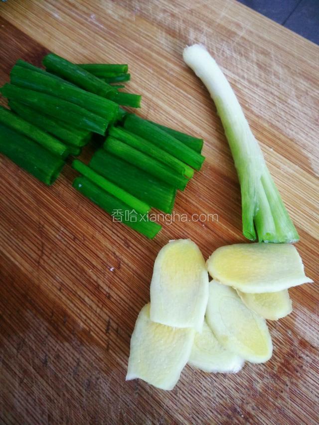 5.生姜切片,葱白分开出来,葱叶切寸段