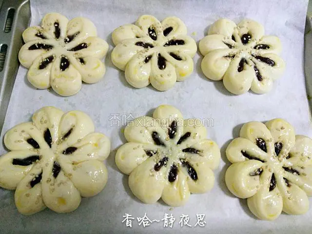 16.轻轻按压整形即可,一个花朵面包生坯就完成了