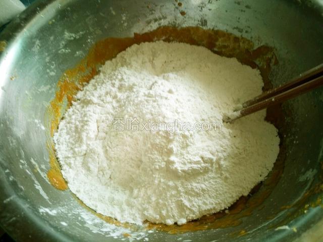 4.蒸好的南瓜倒入盆里用筷子搅拌就成泥了