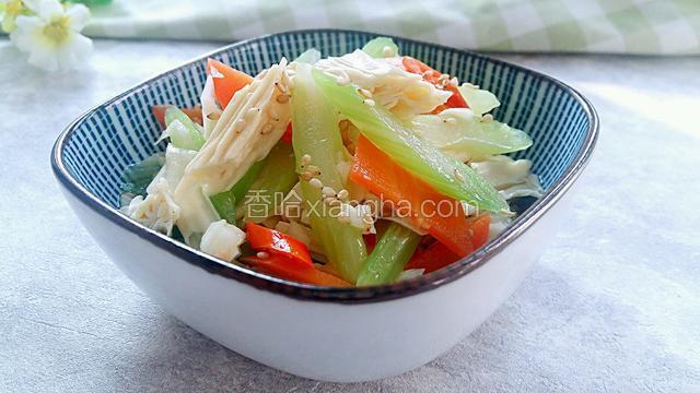 3.锅中加适量的水烧开,放入胡萝卜与芹菜焯一两分钟左右