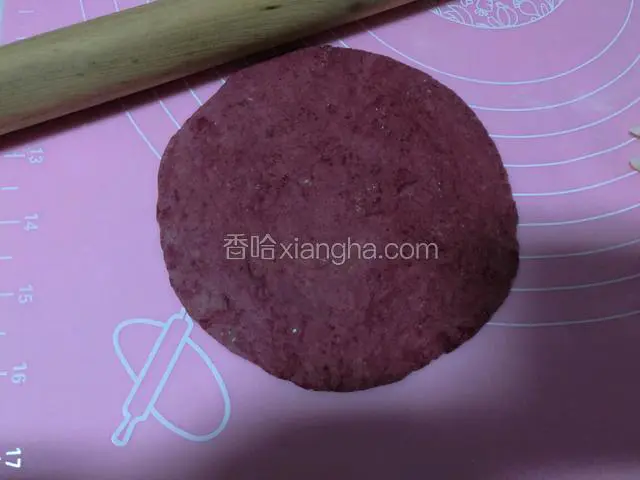 17.将用于做帽子的面团擀成大圆片,四周不要太厚。