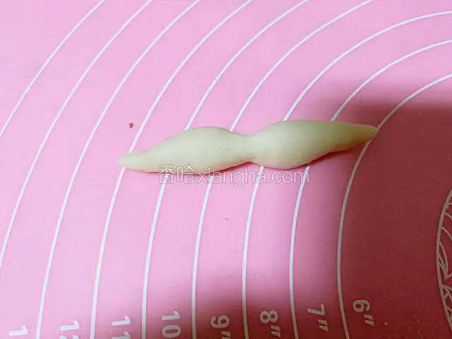 23.把两撇胡面团撮成长条,中间细,两个顶点细。