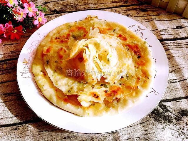 4.擀成薄厚适中的大面片,加适量芝麻油
