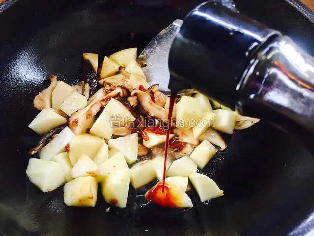 3.土豆切成滚刀块,香菇切片,青椒切片。