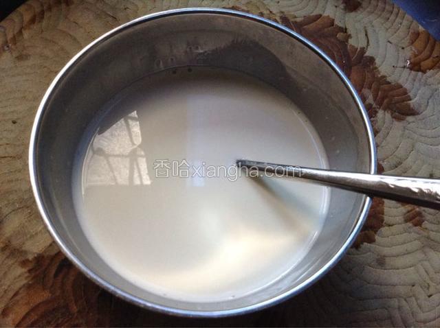 5.将淡奶油 牛奶 砂糖混合。并隔水加热 知道砂糖融化即可
