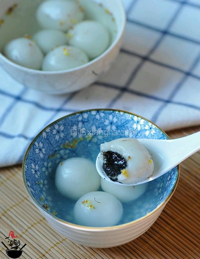 4.把芝麻捏成等份大小的圆,要捏紧哦,放入冰箱冷藏