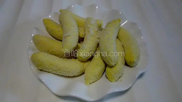 6.将炸好的脆皮香蕉放入盘中。