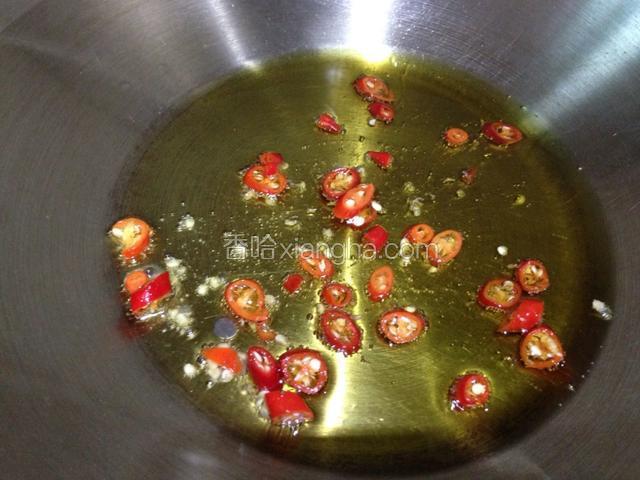 5.锅里放入适量的油,冷油时放入小米辣,中火炒出辣味。