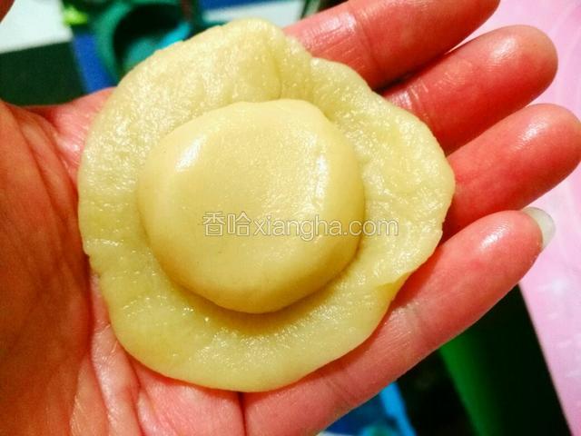 3.将水油皮在外,酥皮在内