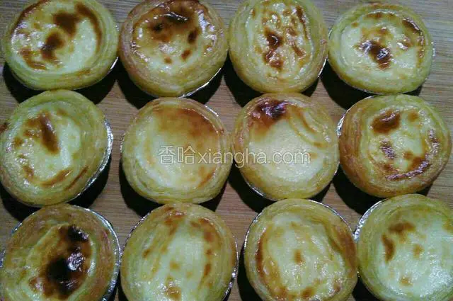 6.烤箱开火预热。取蛋挞皮,放烤盘上。