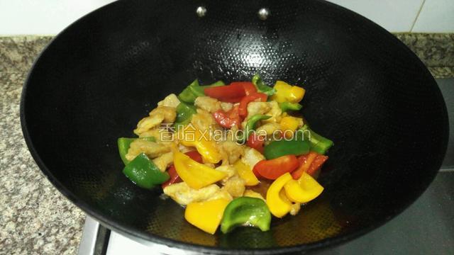 2.里脊肉切小块,加入盐和胡椒粉腌一会。