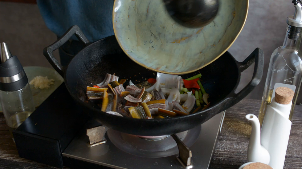 1.鳝鱼宰杀去骨和头尾,快速汆烫