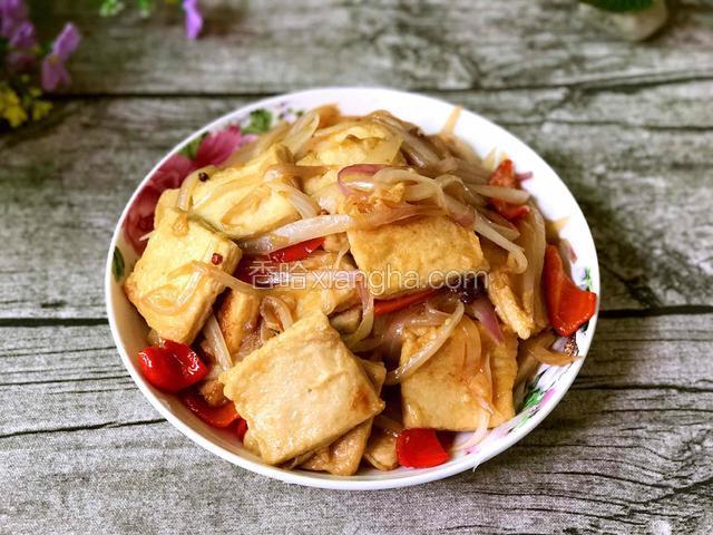 5.千叶豆腐煎至鼓起来,装盘备用
