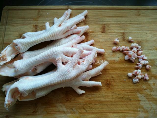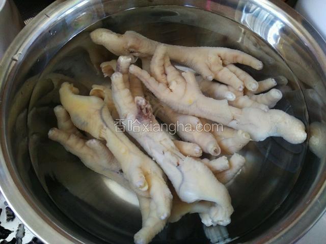 1.将鸡爪清洗干净。如果是冻鸡爪的话,要多泡几次,勤换水,泡出血水。