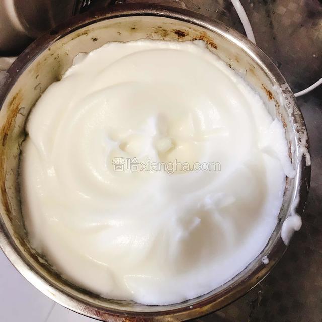 4.蛋清打发好,把打发好的蛋清放入冰箱待用。
