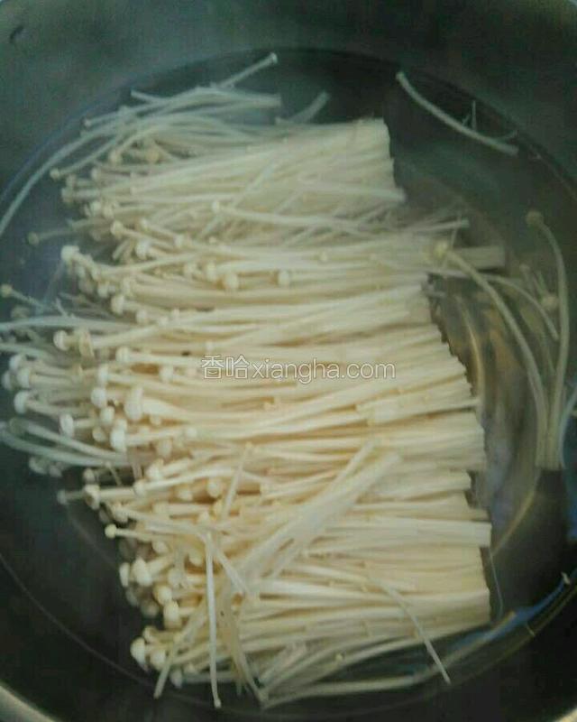 3.锅内坐水,水开后放入金针菇焯二分钟。