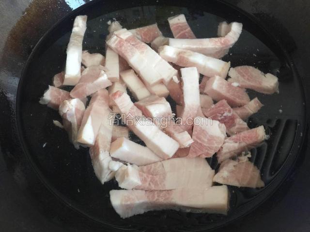 3.锅内放油烧热,放入肉块和调料翻炒片刻。