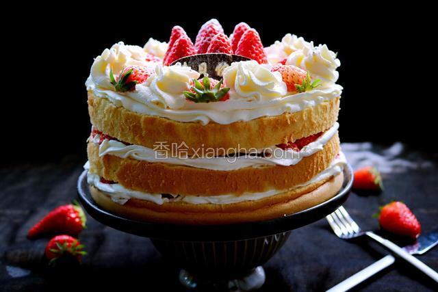 1.先提前烤一个八寸戚风蛋糕(做法搜我之前做的烫面戚风蛋糕的菜谱)
