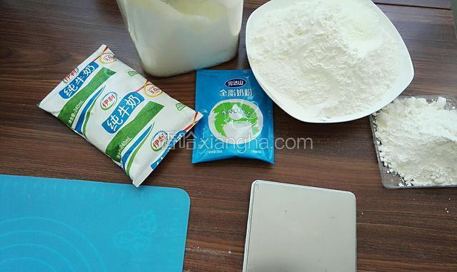 1.准备食材,将牛奶、奶粉、白糖、盐、鸡蛋混合,然后加入面粉、酵母
