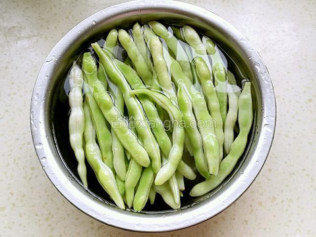 4.芸豆摘洗干净,锅中加水烧开,放入芸豆,焯熟后捞出