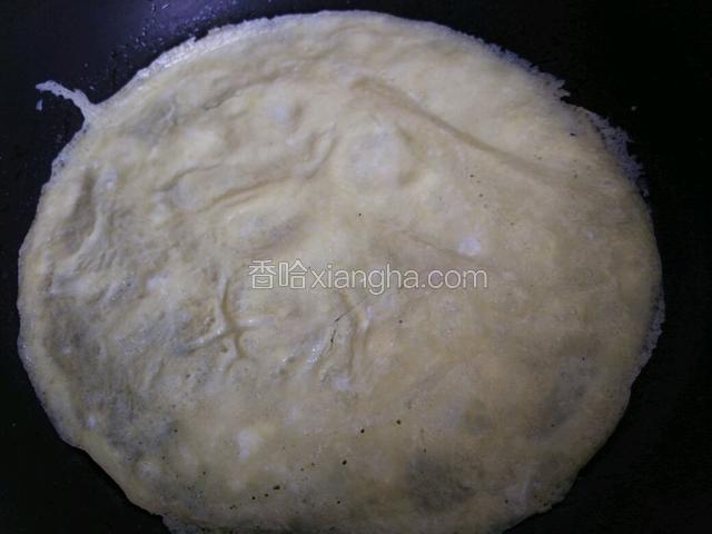 6.平底锅刷层油,加入鸡蛋液迅速摊开